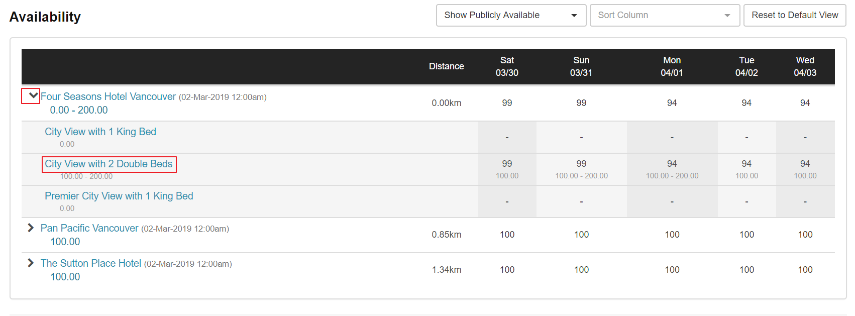 "View Availability" will show you all hotels with availability for the selected dates, as well as hotel distance from the venue and price range.