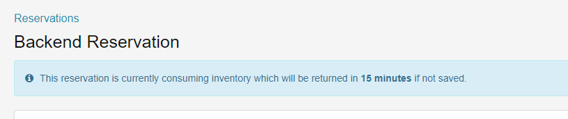 Note: The inventory will be held for 15 mins. If not saved, it will be returned. You will see a notification at the top of the reservation screen that will count down the time remaining.