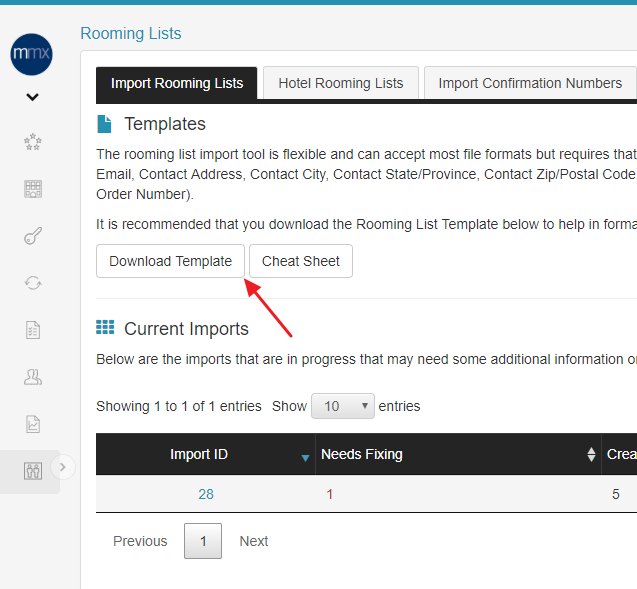 pieces are provided such as check-in dates and payment methods, shown in the list displayed at the top of the "Import Rooming Lists" page. It is recommended that you download the Rooming List Template to help with formatting all the required information correctly. For data in the spreadsheet, we also provide a Cheat Sheet to help you out - more on the Cheat Sheet at the end of the article.